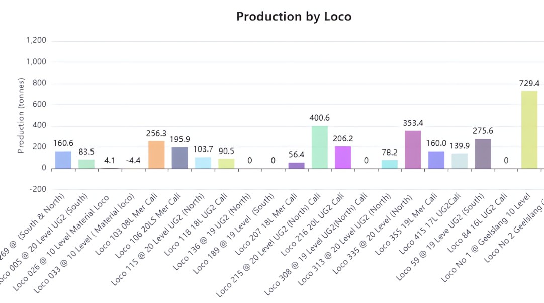 • Tonnage by box, section, level, and mine • Availability and utilisation of locomotives and hoppers
