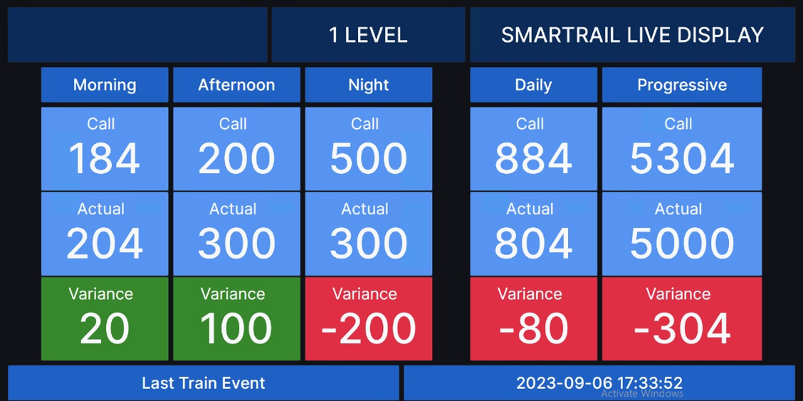 Smartrail was developed to perform the core feature of production monitoring extremely well. Continuous automated data is collected and provided on the software platform showing:
